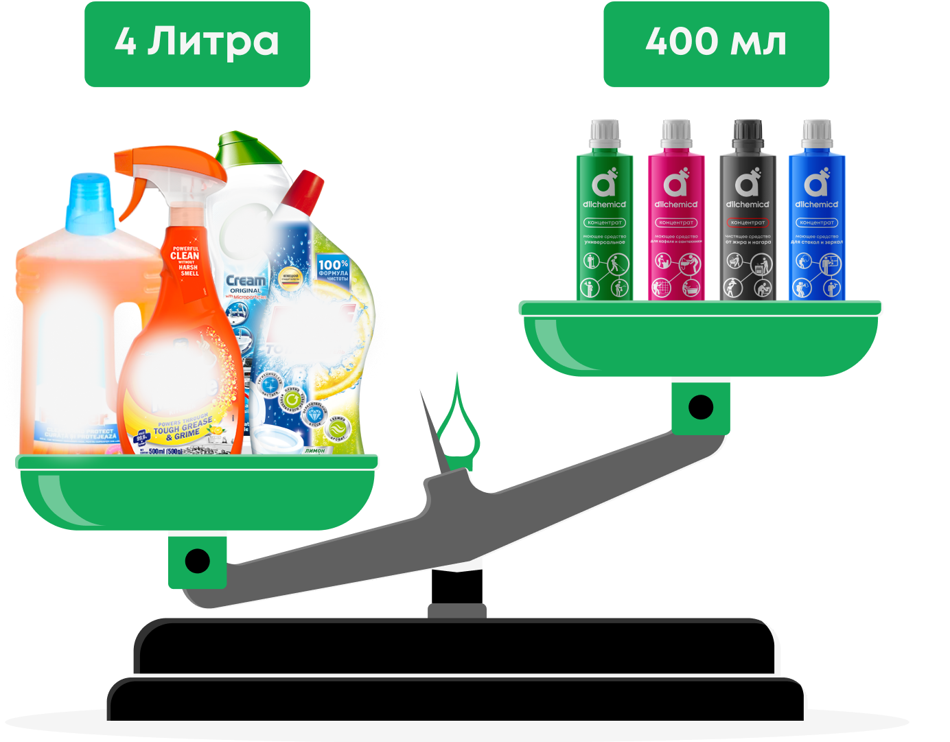 Концентрированные средства занимают меньше места при хранении, а также облегчают логистику и транспортировку